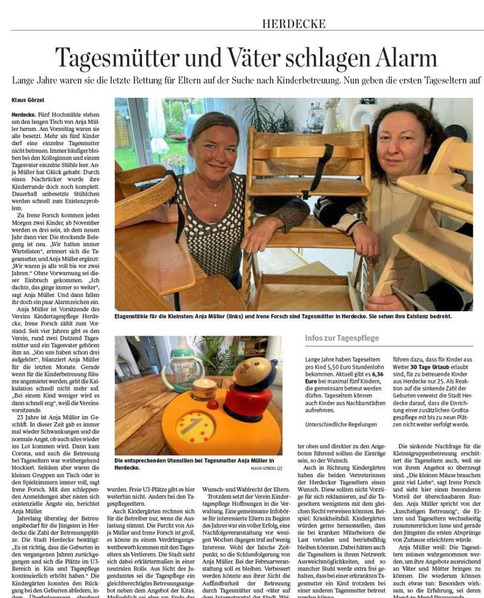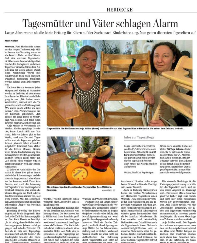 Die aktuell brenzliche Lage der Kindertagespflege, auch in Herdecke - ein Zeitungsbericht