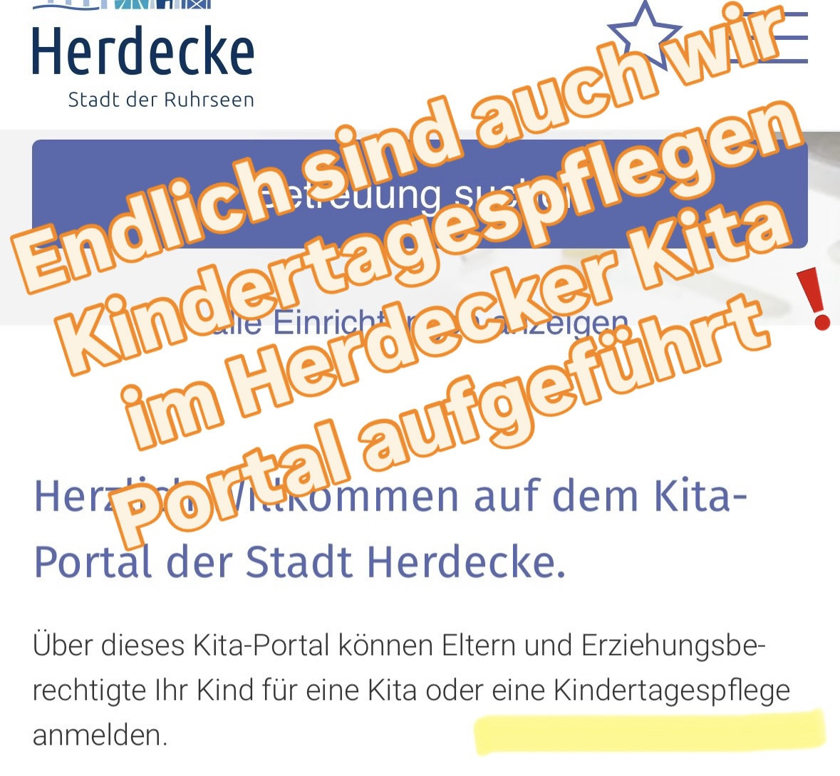 16 Monate nachdem das städtische Kita Portal, am 01. Oktober 2024, erstmals Online veröffentlicht worden ist, sind nun auch endlich Herdeckes Kindertagespflegepersonen dort verzeichnet und einzusehen.