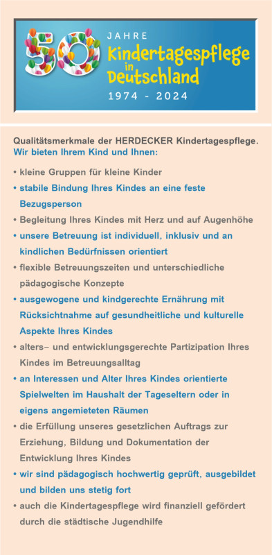 Die Kindertagespflege ist eine gesetzlich anerkannte Form der Kinderbetreuung und wird vom Jugendamt gefördert und geprüft.